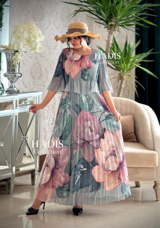 پیراهن ابریشم پسته ای گلدار